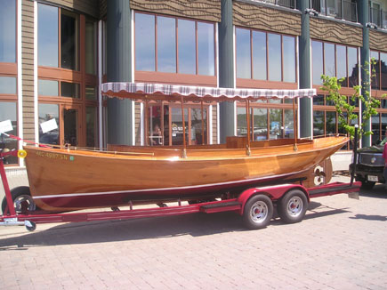 Nanette is a turn of the century (20th that is) 23 ft.fantail, surrey top launch. This boat was designed by Phil Bogler and the plans were obtained from "Wooden Boat Magazine". The construction is cold molded western red cedar and African mahogany. She is powered by a diesel engine. She was delivered to the client in the spring of 2004. |